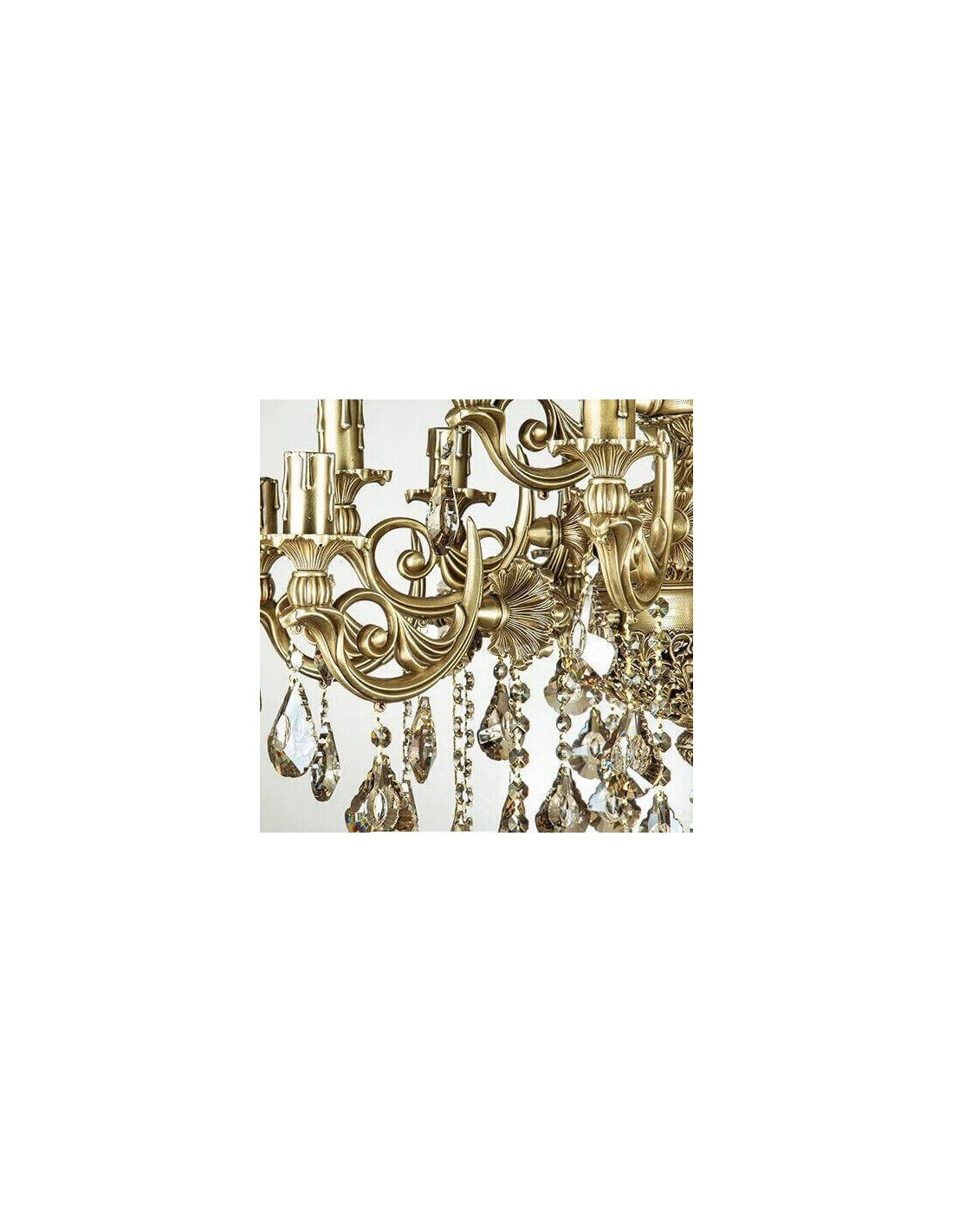 - Design: The flames are like a half-burnt candle, and each of these candles is placed on a flower-shaped plate. Then, every flame is attached to the central part of the chandelier's body with an arm. The arms have such professional curvatures on them. There is a couple of pendalogues under each arm. The focal part of the chandelier body includes engraved globes and pendalogues too.