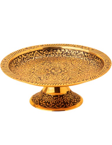 The Minakari art pedestal serving dishes are made of brass alloy and are designed in six colors. The golden one is the base material without paint, and the Persian Mina Kari technique enamels the other five.